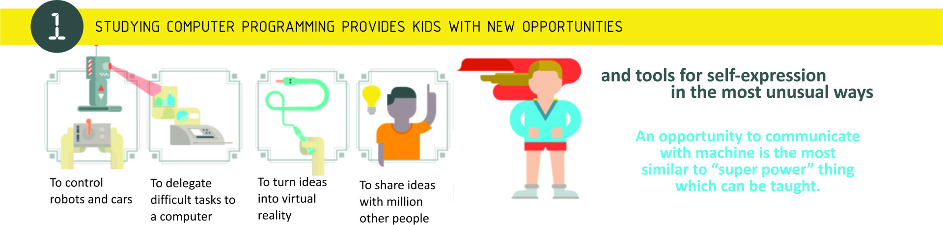 “At CyberSchool learning adult stuff like IT-projects, viruses, programming tools, and blogging features is made easy for kids”.